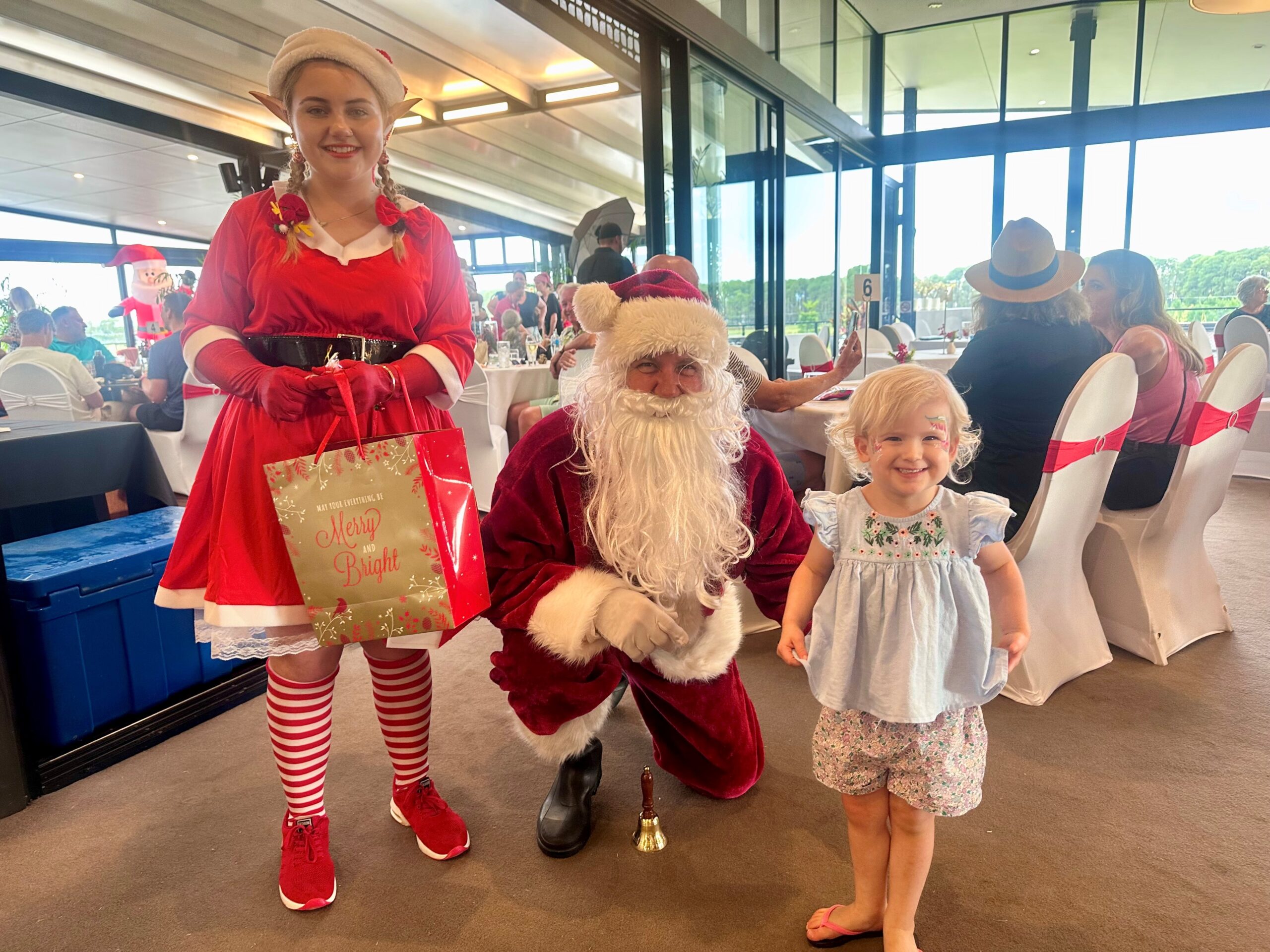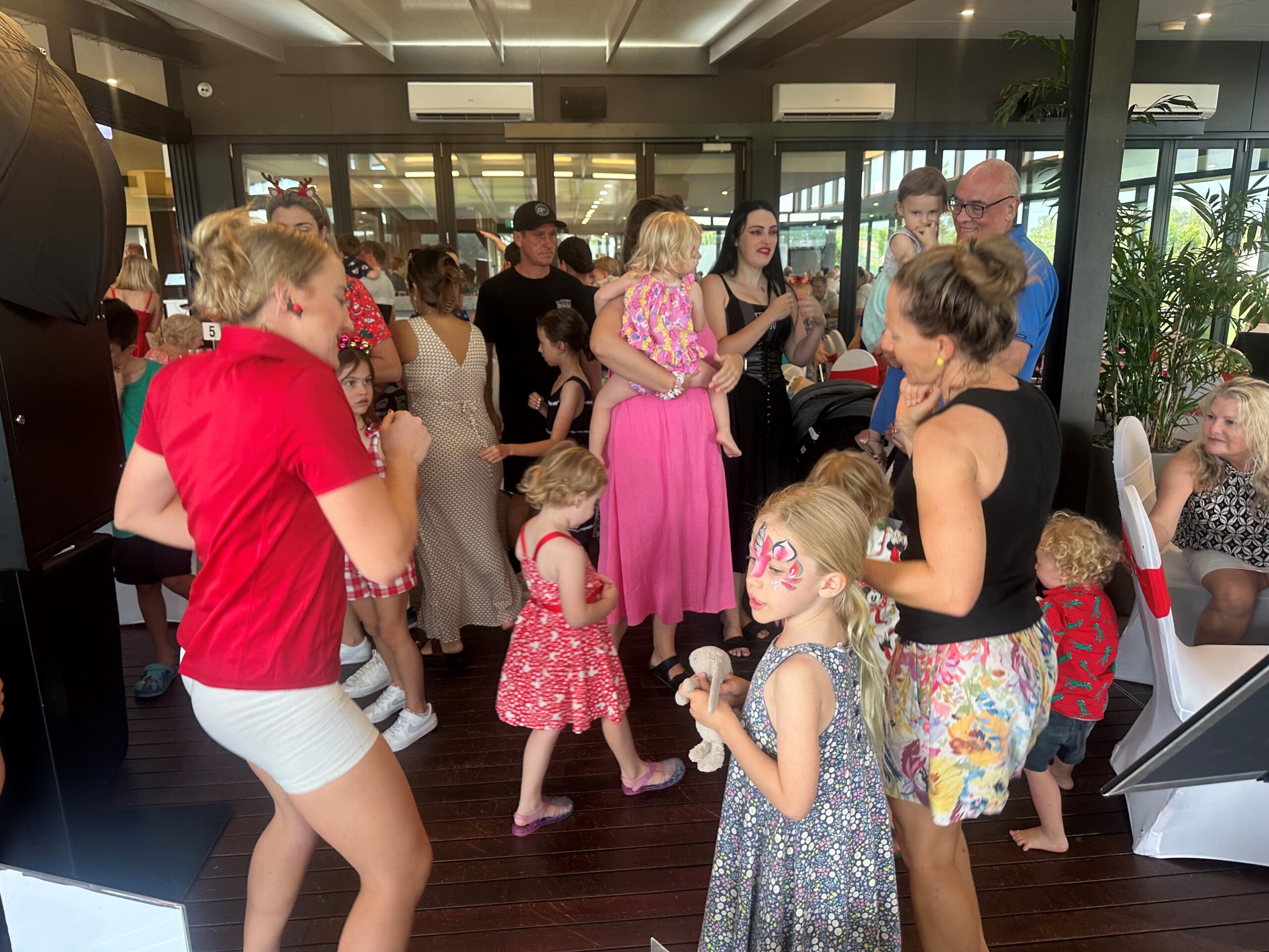 However, the weather took a nasty and unpredicted turn only 15 minutes into the event with a dangerous storm. The Club’s food and beverage team, with the help of Members and guests, miraculously recreated a wonderful undercover event on Lakeview Terrace and in The Jabiru Restaurant. The afternoon, though well at odds with the original plan, proved to be a fabulous fun-filled time and we were lucky that Santa was able to negotiate the weather and still bring smiles to the children’s faces.
