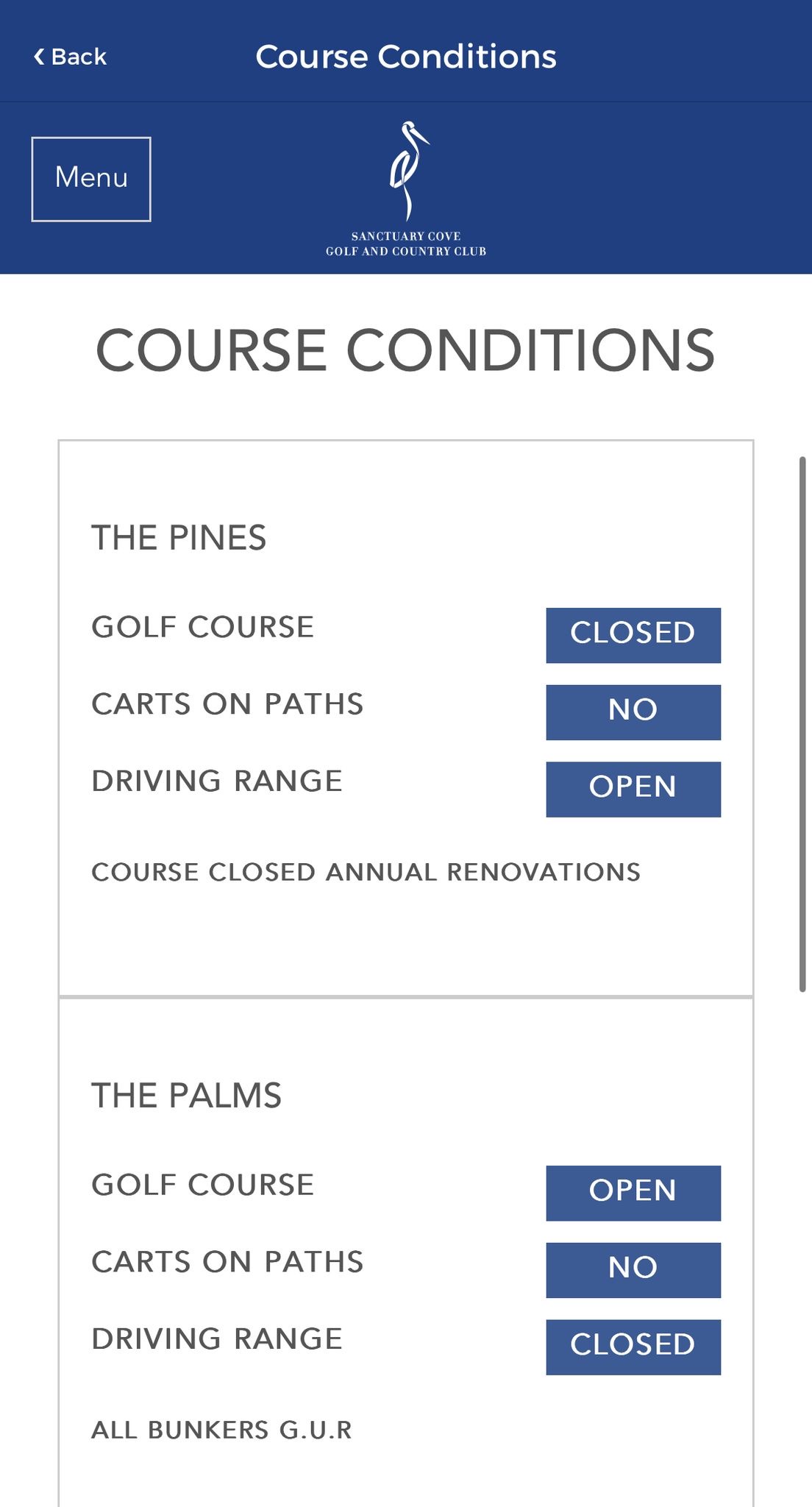 Please note that future golf course closures due to weather events will be communicated through the website and Club App.