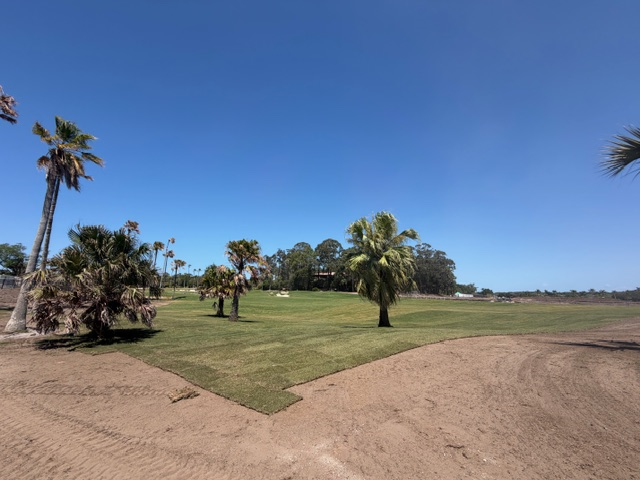 Established new turf on The Palms golf course 10th hole, mown for the first time at 20mm to shape the fairway