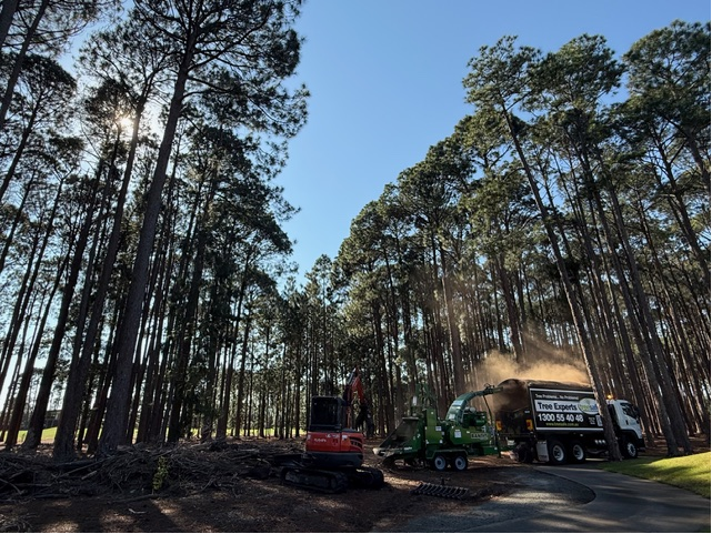 Removed tree debris piles on The Pines golf course (contractors)