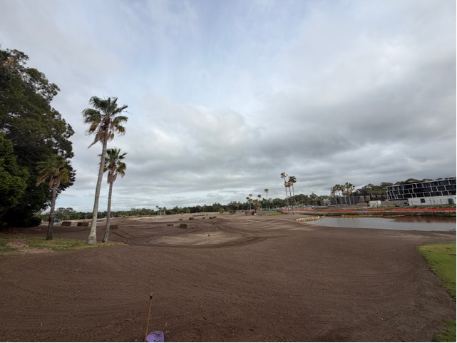 We are pleased to report that we have water on site once again. After a lengthy delay, The Palms golf course is fully filled, with The Pines golf course currently sitting at 75 per cent capacity. All lakes are expected to be topped up within the next week. Heavy irrigation has commenced across both courses to restore the soil profile, and after only a few nights on The Pines golf course, conditions are already showing improvement with targeted irrigation now underway. Bunker works on The Pines golf course are progressing steadily, with approximately one-third of the course completed. On The Palms golf course, turfing has commenced on the 10th hole, beginning around the bunkers before moving progressively down the fairway towards the tees. This marks an exciting stage as the hole continues to take shape. |
